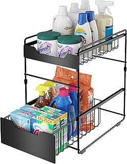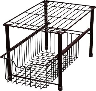 SimpleHouseware 積み重ね可能 シンク下キャビネット スライドバスケット オーガナイザー 引き出し シルバー