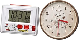リズム(RHYTHM) スヌーピー 目覚まし時計 電波時計 温度・湿度計付き R126 白 108X81X46mm 8RZ126RH03 & SNOOPY ( スヌーピー ) 掛け時計 キャラクター アナログ M06 連続秒針 茶 (木目調) 8MGA40-M06【セット買い】