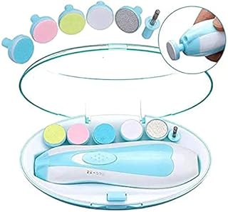 ベビー電動ネイルケア ベビー 爪やすり 赤ちゃん 電動 爪やすり 電動 低騒音 角質ケア 甘皮処理 ベビ 安全なつま先の指の爪の 新生児幼児または女性用のLEDライト付き、6個の研削ヘッド 付属一生品質保証 (青)
