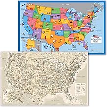 2パック – 子供用米国地図 [イラスト入り] + アンティークスタイル 米国地図 (ラミネート加工、18インチ x 29インチ)