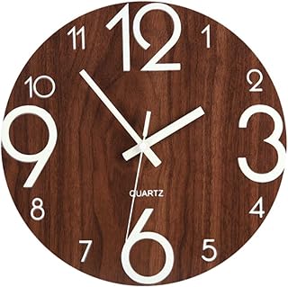 Saytay 掛け時計 壁掛け時計 木製掛け時計 蛍光 夜光ポインタとテキスト 連続秒針 大文字 無騒音 部屋装飾 プレゼント シンプル 直径約30cm (ブラウン)