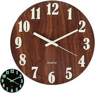 BECANOE 木製掛け時計 蛍光 壁掛け時計 蓄光 サイレント ウォールクロック 連続秒針 インテリア 雑貨 時計