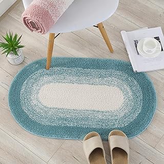 玄関マット 楕円形 40×60cm 青緑色 バスマット 北欧 おしゃれ ドアマット キッチンマット 屋内 屋外 泥落とし 天然素材 吸水 速乾 滑り止め 洗濯機可