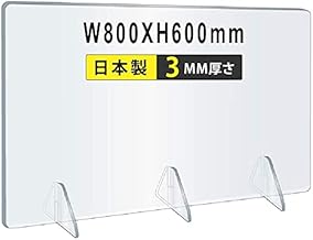 【 ジャパンスマイル 】パーテーション アクリル板 アクリルパーテーション デスク用パーテーション アクリルパネル 飛沫防止対策アクリル板 アクリル足付き 衝立 仕切り板 居酒屋 飲食店 食事 学校 病院 角丸加工 板厚3mm 日本製 jap-r8060 (W800mm×H600mm, 1枚)