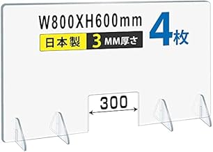 【 ジャパンスマイル 】パーテーション アクリル板 アクリルパーテーション デスク用パーテーション アクリルパネル 飛沫防止対策アクリル板 アクリル足付き 衝立 仕切り板 居酒屋 飲食店 食事 学校 病院 角丸加工 板厚3mm 日本製 jap-r8060-m30-4set (W800mm×H600mm 窓あり, 4枚)