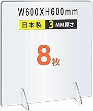【 ジャパンスマイル 】パーテーション アクリル板 アクリルパーテーション デスク用パーテーション アクリルパネル 飛沫防止対策アクリル板 アクリル足付き 衝立 仕切り板 居酒屋 飲食店 食事 学校 病院 角丸加工 板厚3mm 日本製 jap-r6060-8set (W600mm×H600mm, 8枚)